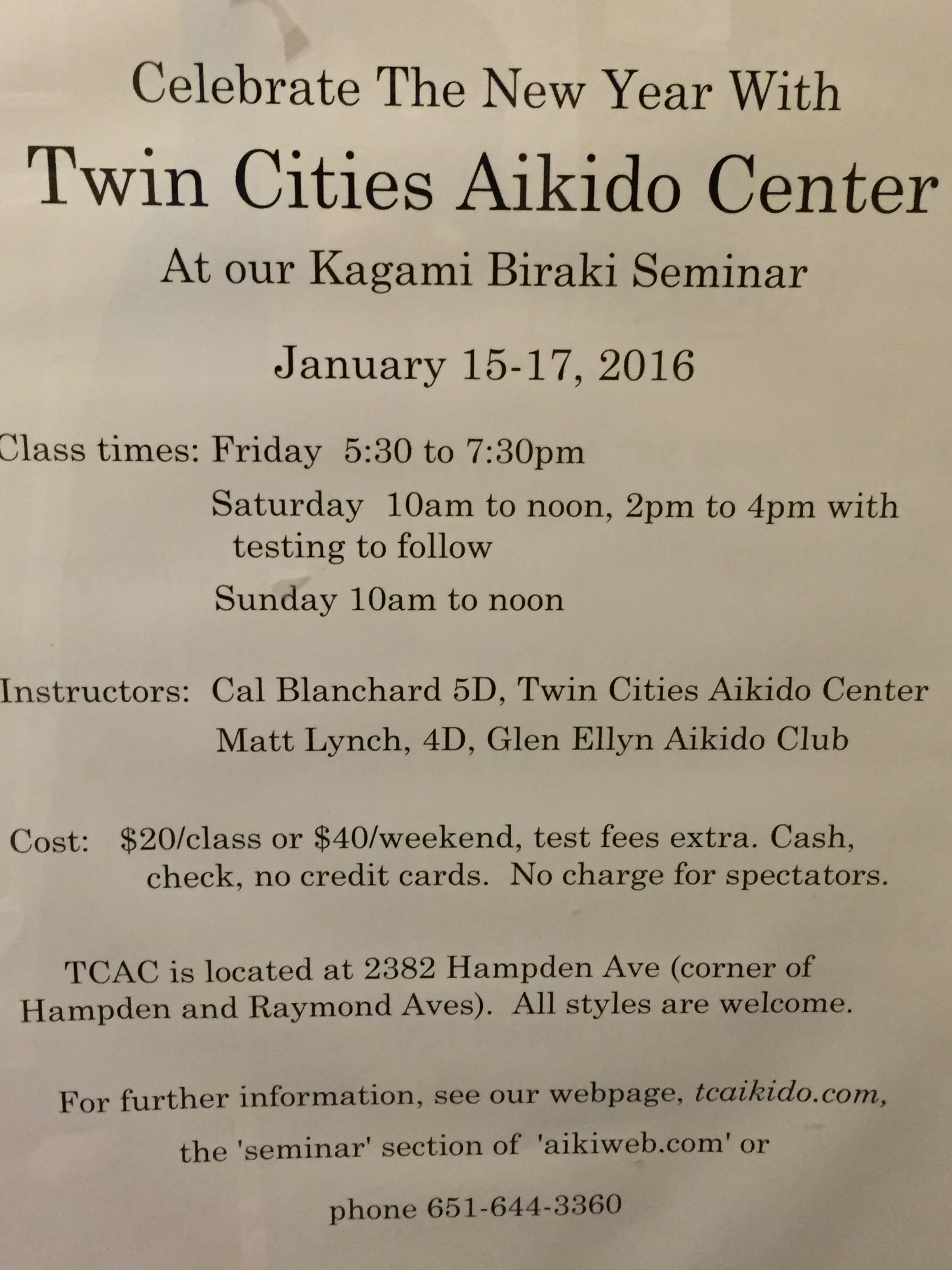 We are pleased that Harvey Konigsberg, Shihan assisted by John Chiarolanzio will be teaching for our 2015 early summer seminar to inaugurate our new space. This will be held May 29-31 at Twin Cities Aikido Center. Continue reading May 29-31 2015 Early Summer Seminar→